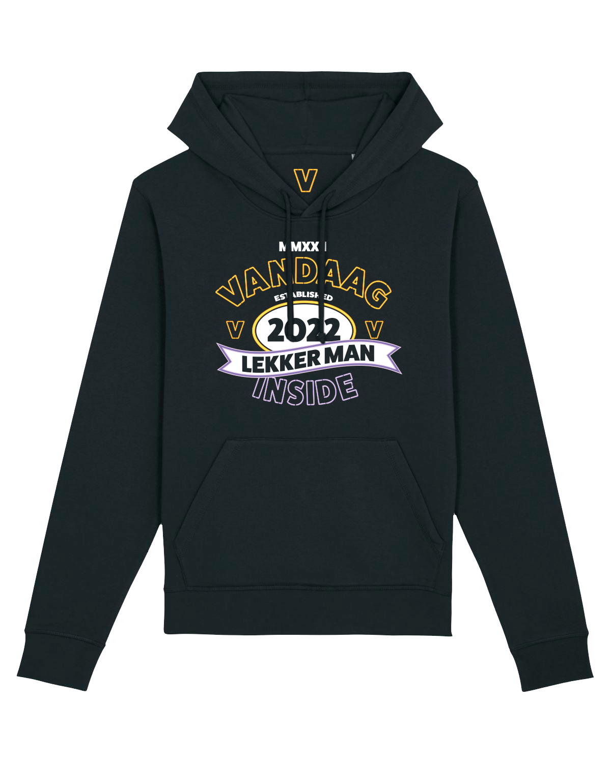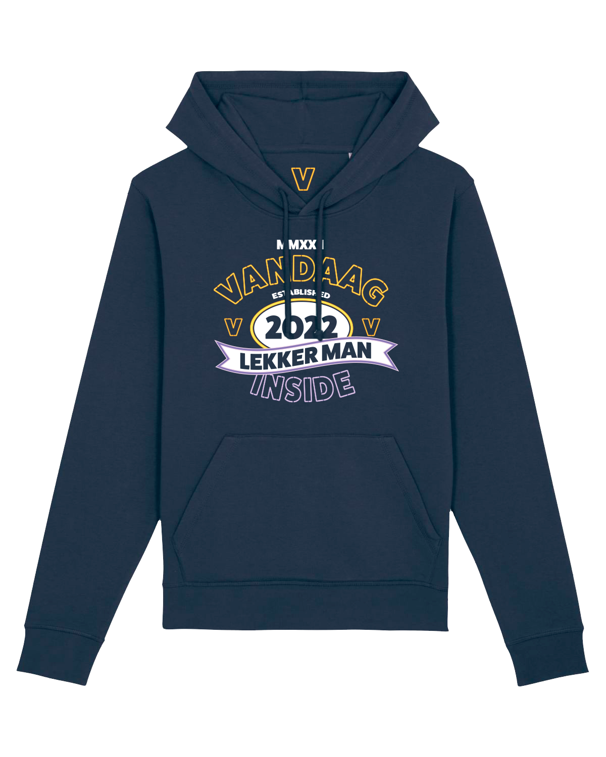 Lekker man, een hoodie met Vandaag Inside in university stijl.