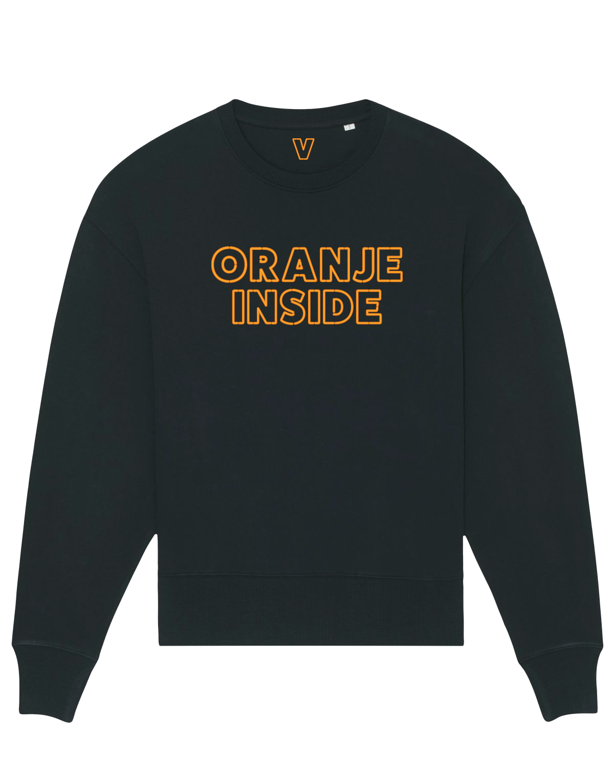 We zijn het allemaal ORANJE INSIDE, een heerlijke sweater om tijdens de wedstrijden van van het Nederlands elftal of tijdens Koningsdag te dragen.