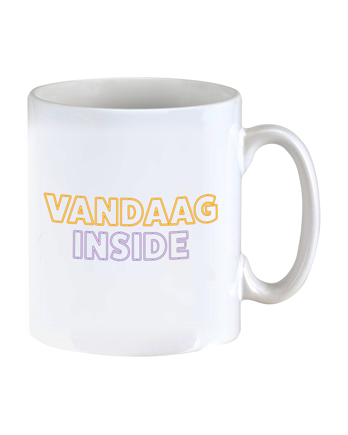 Lekker koffie drinken uit een mok van Vandaag Inside, alle dagen dat ze op TV zijn staan erop, dus zo vergeet je niet wanneer je je favoriet programma kan kijken.